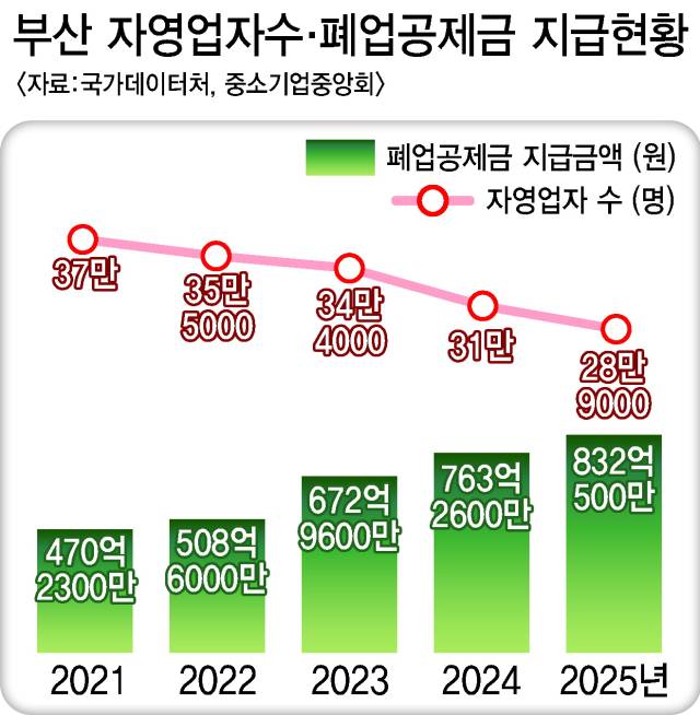 이는 단순히 골목상권의 위축에 그치지 않고 지역경제 전반의 체력을 약화하는 요인으로 작용한다. 부산의 산업구조가 제조업에서 서비스업으로 이동하고 있는 상황에서 서비스업의 기반을 이루는 자영업자가 흔들리면 지역경제 혈맥이 막힐 수 있다.