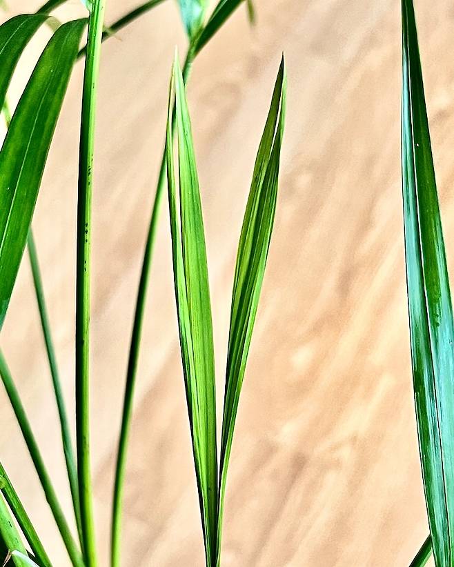 다른 신엽들과는 사뭇 다르게 야자류의 신엽은 긴 줄기로 올라오는 듯하다가 때가 되면 접힌 부채를 펼치듯 예쁜 손을 하나하나 선보이며 펼쳐진다는 특징이 있어요. 그 모습이 얼마나 수려하고 아름다운지 몰라요!