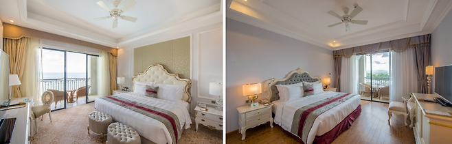 객실별 전망은 정원이 보이는 가든뷰와 바다가 보이는 오션뷰로 나뉜다. 디럭스 오션뷰 객실 기준 주말 1박 숙박비는 285만동(한화 약 16만원)이다. 한 객실 당 2인이 머물 수 있으니 나쁘지 않은 가격이다. 디럭스 가든뷰의 경우 주말 1박 기준 255만동(한화 약 14만 3000원)이다 . 전망별 숙박비가 크게 차이 나지 않으니 취향에 따라 선택하길 추천한다. 스위트룸의 경우 전망은 같으나 객실 면적이 크고 별도의 거실이 딸려 있다. 확실히 공간이 넓지만 일반 객실과 전망이 동일하고 숙박 가능 인원은 최대 3명이다. 개인용 거실이 꼭 필요한 상황이 아니라면 굳이 룸 업그레이드 할 필요는 없어 보인다.