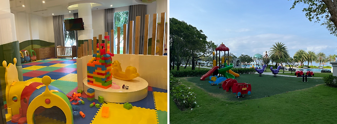 리조트에는 아이들을 위한 공간이 따로 마련돼 있다. 로비를 지나 통로로 이동하면 아이들을 위한 실내 놀이방이 나온다. 수영장 부근 잔디밭에도 아이들을 위한 야외 놀이터가 있다. 리조트는 올데이 키즈 클럽이라는 프로그램도 운영하고 있다. 매일 다른 활동을 진행하기에 아이들이 지루할 틈이 없다.