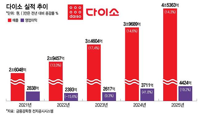 "비싸봤자 5000원인데" 다이소 매출 4.5조 '역대 최대'...수익률도 대박