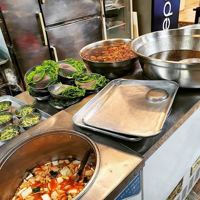 1979년 부부가 만들기 시작해 이제는 2대를 이어오는 맛집이 된 마포 '원조 조박집 본관'. 질 좋은 국산 갈비살과 목살을 섞어 달콤짭잘한 양념에 재워 내어준다. 양념의 맛이 조금 강하기 때문에 그냥 먹어도 간이 딱 맞는다. 갈비도 갈비지만 조박집의 별미는 바로 고기를 먹기 전에 내어주는 동치미국수. 시원상큼한 국수가 입맛을 돋워준다. 마포유수지 공영주차장에 1시간 무료주차가 가능하다니 참고하시길.