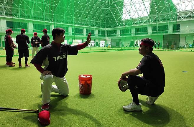 투수 훈련 시간에도 포수가 있고, 타자 훈련 시간에도 포수가 있다.