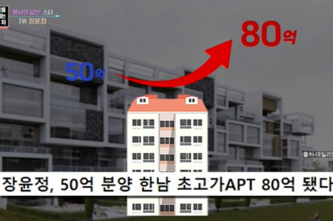 후배 가수 이찬원도 "장윤정 선배님 덕분에 트로트 가수들의 행사비 기준이 크게 올랐다"며 "저는 데뷔 초보다 몸값이 125배 올랐다"고 덧붙였다.
