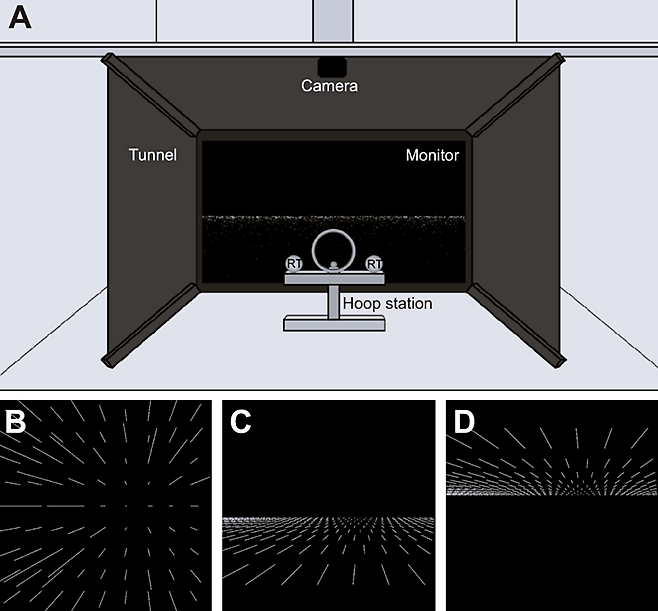 비디오 게임 영상의 진행 방향은 좌우 2°, 6°, 10°, 14°, 18°, 22° 등 4°씩 어긋나 보이도록 일부러 조정했다. 이를 통해 물범이 얼마나 미묘한 각도 변화를 시각적으로 읽어내는지 측정했다.