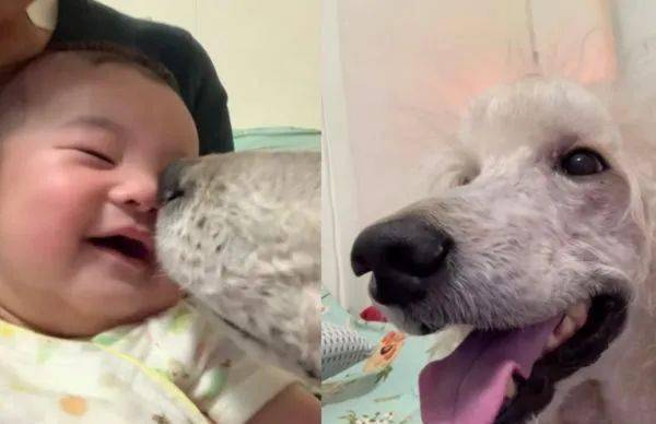 아기가 태어난 후, 말론은 처음에는 새로 온 아기 동생을 쉽게 받아들이지 못했습니다. 사랑을 빼앗길까 두려워했는지, 아기에게 눈길조차 주지 않았고, 주인이 아기를 안고 다가가면 심지어 낮게 으르렁거리기까지 했습니다. 반면, 다른 강아지 모나는 아기 동생을 살뜰히 돌보는 훌륭한 '강아지 보모' 역할을 해주었습니다.