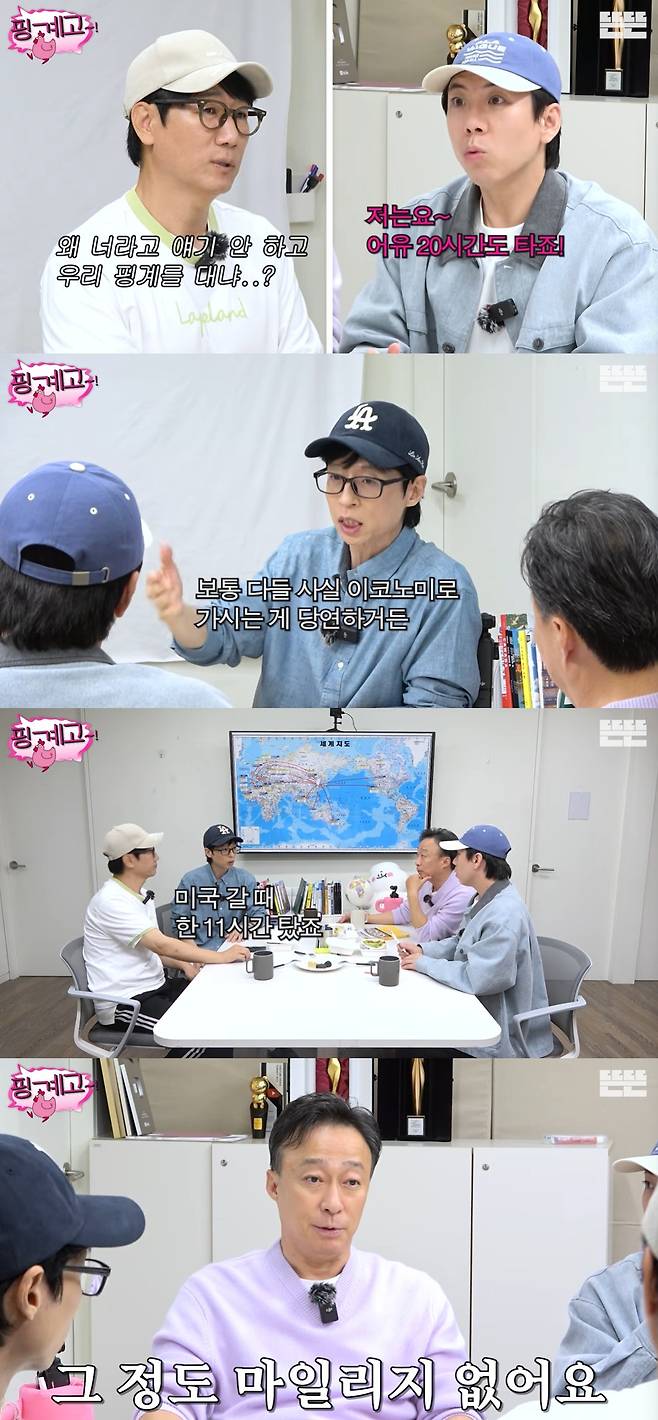 유재석이 제작진의 항공권 지원을 거절, 이코노미 경험을 공개했다.