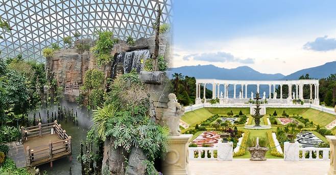 우리나라 최대 규모의 실내 식물원 거제 식물원입니다. 최고 높이 30m에 이르는 정글돔 내부에는 약 300여 종 1만 주의 열대수목이 자라고 있는데요. 석부작 계곡과 초화원, 선인장원, 빛의 동굴 등 다채로운 볼거리를 제공하고 있습니다.