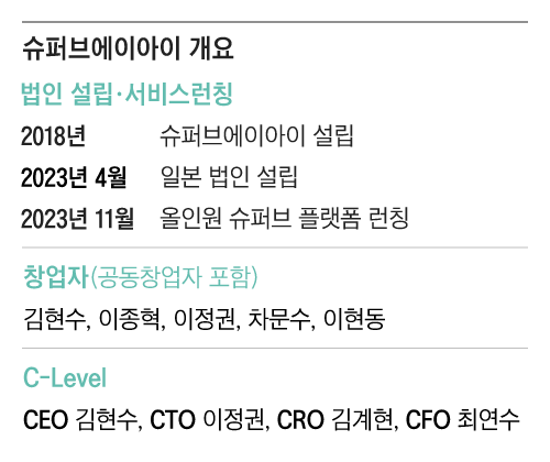 슈퍼브에이아이는 듀크대 전자공학과를 나온 김현수 대표가 2018년에 설립했습니다. 듀크대 학사 이후에 같은 대학의 박사 과정에서 인공지능과 로보틱스 분야 연구를 하다가 SK텔레콤의 T브레인의 엔지니어로 왔고, 다시 대기업을 나와서 스타트업을 창업했습니다. 2019년에 와이컴비네이터에 선정됐습니다. 당시 7번째 한국 스타트업이었습니다.
