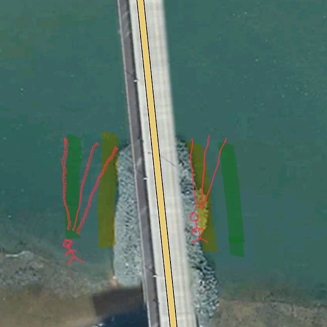 대교 바로 아래는 수심이 얕고