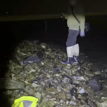 딱 포인트 위에서 밝은 랜턴을 비추며