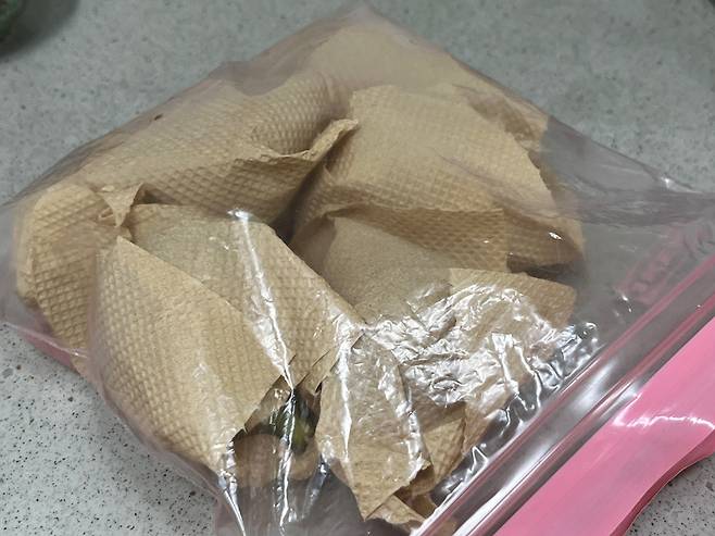 키친타월로 하나씩 감싼 무화과는 지퍼백에 다시 넣어 이중으로 밀봉합니다. 그다음 냉장고 야채칸에 넣어서 보관해 보세요. 보관 중 눌리거나 찌그러지지 않도록 주의해 주세요.