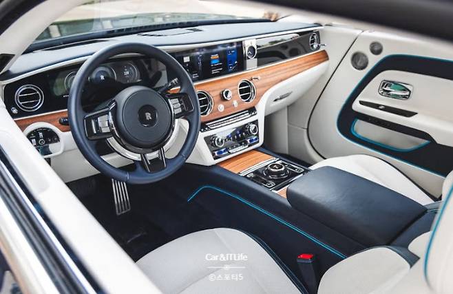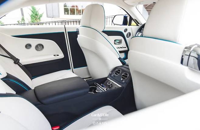 롤스로이스는 멋진 실내를 만들었지만, 몇 가지 아쉬운 점도 있습니다. 예를 들어, 뒷문은 전동식으로 닫히지만 열 때는 추가적인 힘이 필요하며, 문 아래 부분이 튀어나와 있어 정강이를 부딪히기 쉽습니다. 뒷좌석은 거대한 센터 콘솔 때문에 두 명만 앉을 수 있지만, 넓은 공간을 제공하며, 코치 도어 덕분에 타고 내리기가 편리합니다.