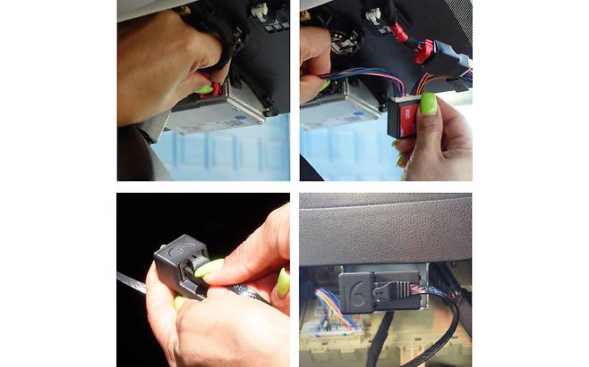 장착은 쉬울까?? 콤마3x는 블랙박스 설치 위치와 비슷한 차량 앞 유리 상단에 부착된다. 그리고 차량에 기본 탑재된 카메라 모듈로부터 데이터 전송을 받기 위한 케이블과 OBD 커넥터에 전용 케이블을 연결시킨다. 케이블은 총 2개.