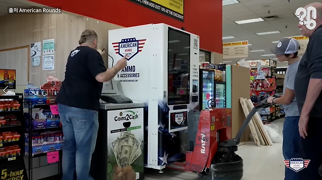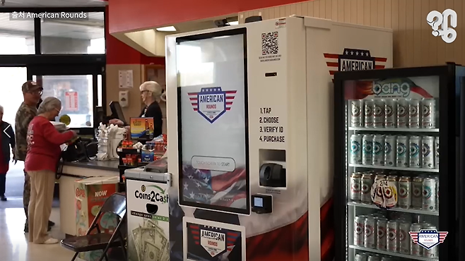 이 영상을 보라. 음식 주문할 때 쓰는 키오스크처럼 생겼는데 카메라가 달려있고 화면엔 ‘재장전 필요하니?’라는 수상한 문구가 있는 대형 기계가 있는데 심지어 여긴 식료품을 파는 마트 안이다. 유튜브 댓글로 “해외 마트에서 총알을 파는 자판기가 있던데 진짜인지 궁금하다”는 의뢰가 들어와 취재했다.