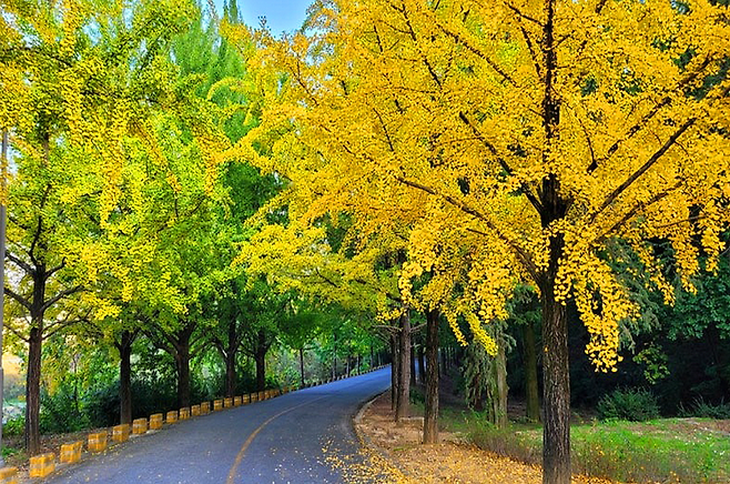 길상사에는 진입로부터 도로까지 은행나무가 줄지어 있어 걷거나 차를 타고 지나가는 것만으로도 마음이 편안해지는 아름다운 풍경을 감상할 수 있습니다. 특히 10월 말에서 11월 초 사이에는 은행나무들이 노랗게 물들어 진풍경을 연출합니다.