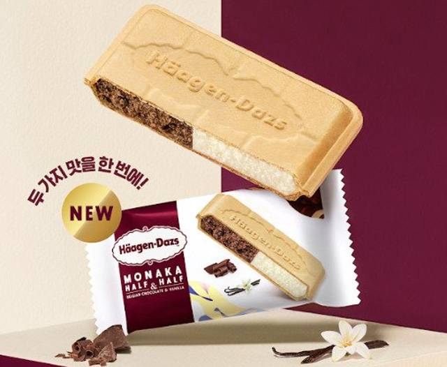 아이스크림 브랜드 하겐다즈는 자사의 두 가지 시그니처 플레이버를 한 번에 즐길 수 있는 ‘하프앤하프 모나카 아이스크림’을 출시했다. 자사의 프리미엄 아이스크림을 모나카 웨이퍼와 즐길 수 있도록 만든 제품이다. 신제품에 활용된 시그니처 플레이버는 바닐라와 벨지안 초콜릿 아이스크림이다. 두 아이스크림을 반반씩 담은 형태로 구성됐다. 6개들이 패키지의 판매가는 26,900원이다.