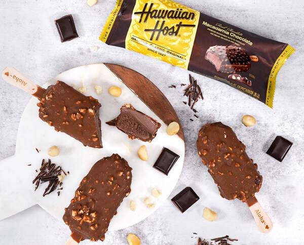 편의점 세븐일레븐은 초콜릿과 견과류를 활용한 새로운 아이스크림 ‘하와이안 호스트 아이스바’를 출시했다. 100년 전통의 마카다미아 초콜릿 명가 하와이안 호스트의 맛을 그대로 살린 제품이다. 밀크 초콜릿에 고소한 맛의 마카다미아가 콕콕 박힌 아이스바로, 초콜릿의 달콤함에 부드러운 고소함까지 누를 수 있는 프리미엄 아이스크림 바 제품이다. 세븐일레븐 편의점에서 개당 3,500원의 판매가로 판매 중이다.