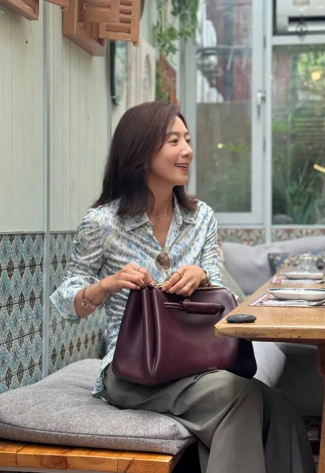 배우 김희애가 패턴 셔츠와 와이드 팬츠 점심 데이트룩으로 일상도 우아한 빛나는 미모를 발산했다.