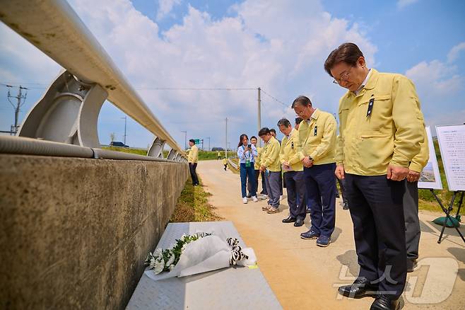 이 대통령은 오송 지하차도 참사 2주기를 하루 앞둔 이날 참사 현장을 찾아 “관리 부실로 인한 인명사고는 엄격히 처벌해야 한다”고 강조했다. (대통령실 제공. 재판매 및 DB 금지) 2025.7.14/뉴스1