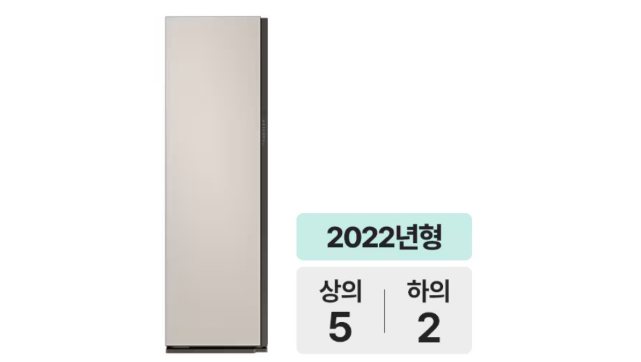 마지막 제품 또한 상의 5벌 하의 2벌의 대용량 라인이다. 먼지 제거는 에어워시로 해결하며 그 외 살균, 탈취, 구김 완화는 제트스팀으로 처리한다. 하단의 한 부분을 비워 두어 롱패팅, 롱코드와 같은 긴 옷도 케어가 가능하다. 실내 제습과 AI 건조 기능이 있어 제습을 수행하거나 건조 시간을 빠르게 설정할 수 있다. 크기는 595 x 1960 x 632mm.