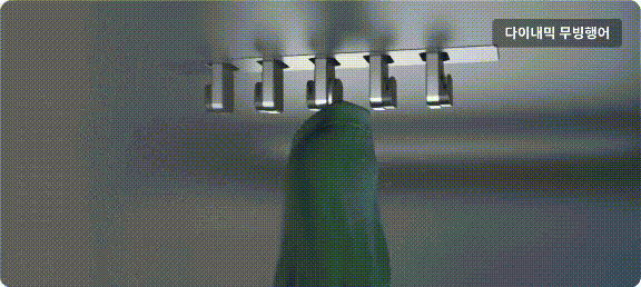 LG전자와 삼성전자는 의류관리기에서 옷의 먼지를 터는 방식을 다르게 설계했다. LG전자의 의류관리기는 움직이는 옷걸이, 무빙행어를 장착했다. 행어의 진동으로 옷의 먼저를 제거하는 방식으로 소음이 다소 들리는 대신 먼지 제거력이 우수한 편이다. 현재는 다이내믹무빙행어가 탑재된 제품이 주로 판매되는데 기존 좌우로만 움직였던 행어의 기능을 상하좌우 모든 방향으로 흔들리도록 만들었다. 무빙행어플러스는 사용의 편의를 위해 거치 방식을 측면으로 바꾼 행어로 기능은 동일하다.
