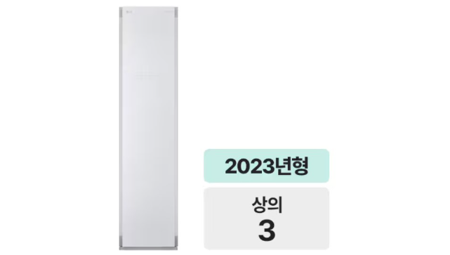 23년형 상의 3개 용량 모델로 바지관리기를 탑재하지 않는 대신 가격을 100만 원 미만으로 낮춰 가성비를 챙겼다. 먼저 제거는 무빙행어로 살균, 탈취, 구김 완화는 트루스팀을 이용해 처리한다. 기본 우측열림 도어지만 양방향도어로 소비자가 문이 열리는 방향을 선택할 수 있다. 가성비 라인이지만 실내 제습과 급속 코스 등 부가 기능이 알차게 들어있는 것이 장점이다. 크기는 445 x 1850 x 585mm.