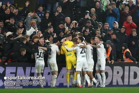 스완지는 후반 추가 시간 엄지성의 발끝에서 시작된 공격으로 동점을 만들었다. 리암 컬렌의 크로스를 잔 비포트니크가 깔끔하게 마무리하며 경기의 균형을 맞췄다. 기세를 올린 스완지는 경기 막판 드라마틱한 결승골을 만들어 냈다.