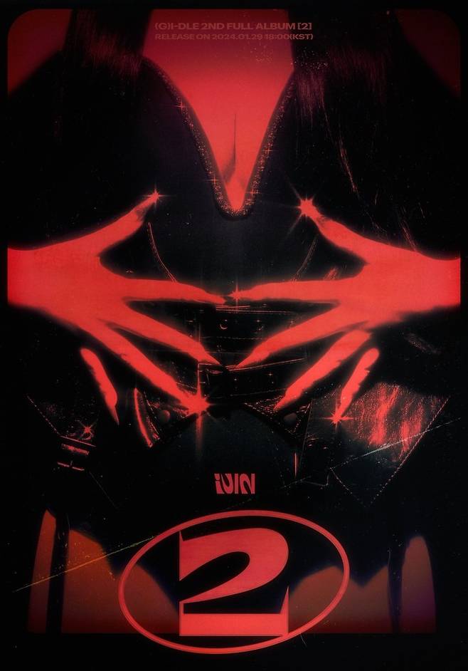 짧은 티저 영상에는 검은 화면에 뒤집힌 숫자 '2'가 (여자)아이들의 새로운 로고로 바뀐 뒤, 2번째 정규 앨범의 제목 '2'와 복귀일(29일)를 공개하는 내용이 담겼는데요. 함께 공개된 포스터에는 붉은 조명에 검은 코르셋을 입고 긴 네일아트를 한 사람의 전신과 앨범 로고가 담겨 궁금증을 자아냈습니다.