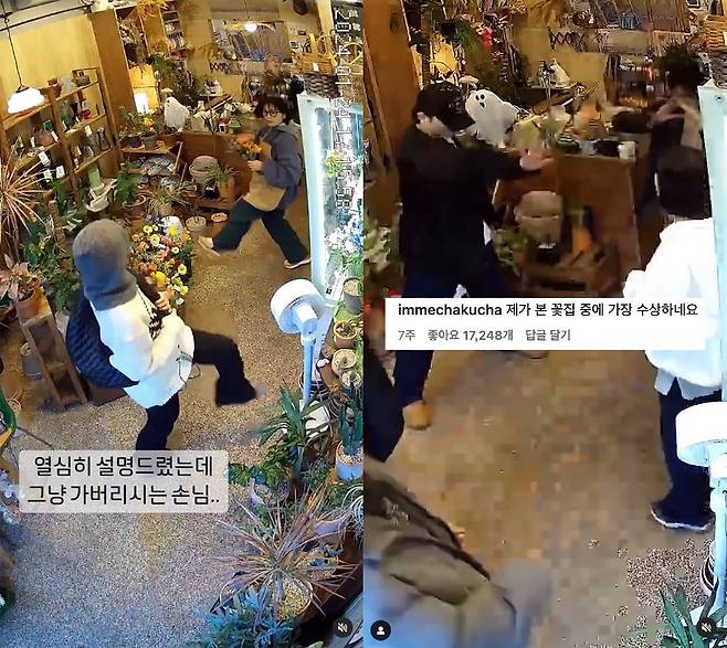춤을 춰야 꽃을 살 수 있는 성수동 꽃집이에요. 손님이 들어와서 춤만 추고 꽃은 안 사갔다는 릴스가 올라오며, 사장님은 춤이 필수라고 했지만 아무도 와서 춤을 추지 않는다며 기다리겠다고 댓글을 달았죠. 여기서부터 시작되어서, 정말 어떤 손님이 춤을 추고 가신 뒤부터 인스타그램 알고리즘의 선택을 받았다고 해요.