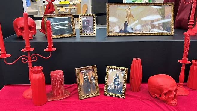입구 바로 옆에 있는 장식품들. 해골이나 촛대는 너무 빨개서 깨는데, 액자들은 굉장히 고급스러운 느낌입니다.