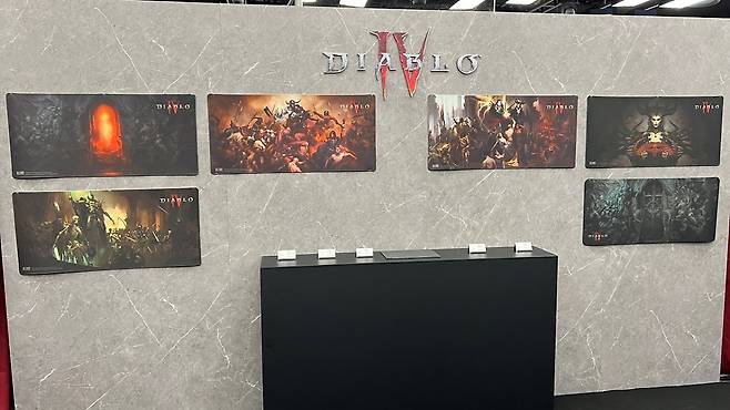 반대편 벽에는 플레이스테이션판 디아블로 IV를 전시 중입니다. 'HELL IS COMING'이 파란색인 것도 이를 상징하는 걸까요?