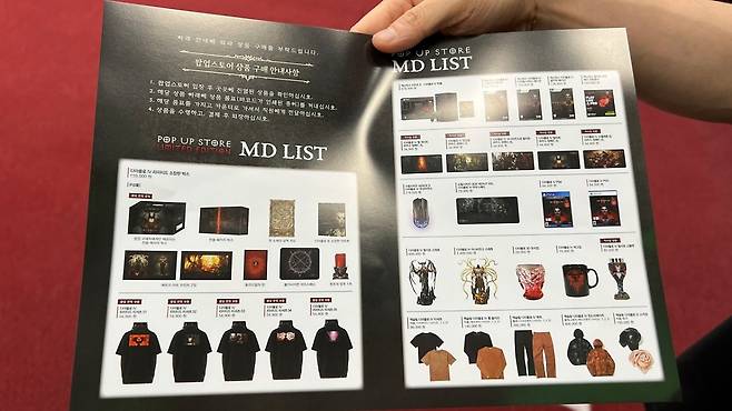 팝업 스토어에서만 판매하는 한정 티셔츠. 개인적으로는 이런 게 게임 관련 상품 같아서 좋습니다.