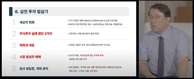 영상은 개인 투자자의 전설 남 회장의 주식 철학과 전략이 정리된 ‘주식 투자의 기본서’와 같다. 시기를 타지 않는 내용이라서 다시 한번 시청해도 무방하다. 재생시간이 약 80분으로 길지만, 영상을 틀어 두고 음성만 들어도 좋다.