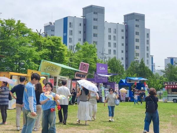 올해는 화랑회관 앞 수변공원까지 축제 구역이 확대되어, 넓은 잔디광장에서 피크닉을 즐길 수 있게 되었어요. 대형 그늘막과 감성적인 쉼터가 설치되어 있어, 돗자리만 챙기면 누구나 편하게 앉아 맥주와 음악, 자연을 동시에 만끽할 수 있습니다.