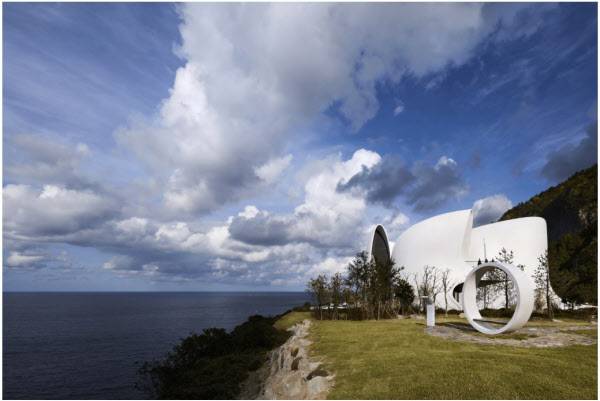 울릉도라는 지역 특성을 잘 살린 건축미가 눈길을 끈다. 김 건축가는 송곳산 옆에 자리 잡은 벼랑 끝 대지의 특성을 살려 건물을 디자인했다. 천문 기상대 컴퓨터로 관측한 해와 달의 궤적을 고려해 인간과 자연의 기(氣·energy) 흐름을 연결하는 도구로 조성했다. 모든 객실은 바다 등 울릉도 자연경관을 향하도록 배치했다.