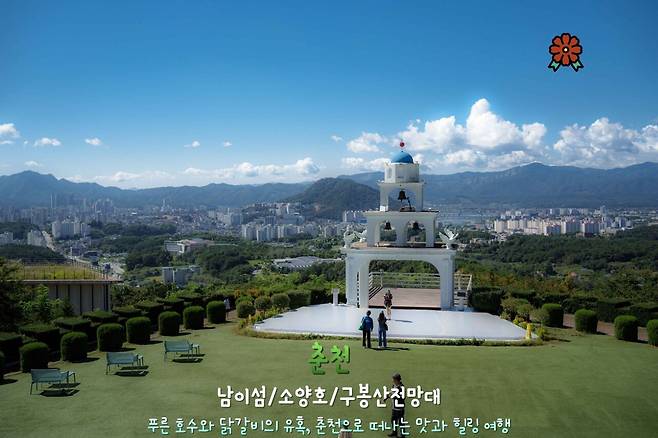 구봉산 전망대 & 카페거리: 춘천 시내와 아름다운 호수 풍경을 한눈에 감상할 수 있는 전망대와 분위기 좋은 카페들이 있는 곳입니다. 최근 가장 인기가 높은 춘천 여행지로 꼭 들러보세요.