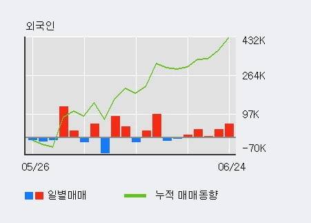 지난 한달을 기준으로 보면 외국인이 43.1만주를 순매수했고, 기관도 7.5만주를 순매수했다. 반면 개인들은 49.8만주를 순매도한 것으로 나타났다. 같은 기간 이 종목의 거래 비중은 외국인과 개인이 각각 51.3%, 26.6%로 비중이 높다.