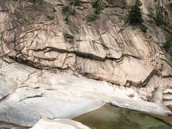 비선대 바위에 도착하면 시원한 계곡 풍경이 펼쳐집니다. 봄비가 내린 후에는 바위에서 작은 폭포가 형성되어 더욱 아름다운 광경을 연출한다고 해요. 주변에 마련된 벤치에서 잠시 쉬어가며 봄 산의 정취를 느껴보는 것은 어떨까요?