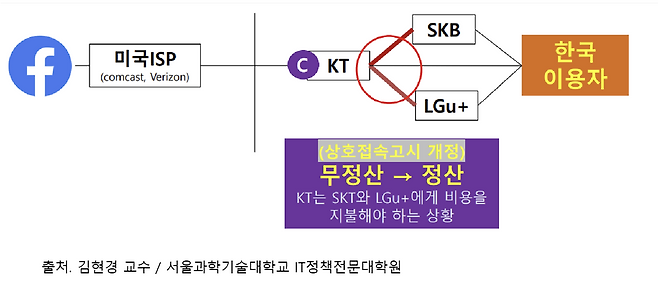 문제는 국내 통신사가 망 접속료를 받을 수 없고 반대로 해외 통신사에 접속료를 지불해야 하는 해외 트래픽의 증가다. 한국 통신사들은 글로벌 기준 2등급(2계위)이다. 거대한 해외 통신사(1등급)와 연결을 하려면 접속료를 지불해야 한다. 국내 이용자들의 해외 콘텐츠 이용이 늘어남에 따라 비용은 더 높아졌다.