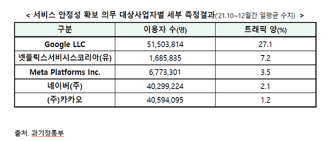국내 이용자들이 점점 더 많이 해외 서비스를 이용하게 되면서 통신사들의 비용 부담이 커졌다. 과기정통부에 따르면 지난해 4분기 기준 국내 트래픽을 가장 많이 유발한 서비스 사업자는 구글(27.1%)이다. 2위는 넷플릭스(7.2%), 3위는 페이스북 플랫폼을 운영하는 메타(3.5%)다. 국내 트래픽의 37.8%가 해외 통신망을 거쳐 국내에 제공된다.