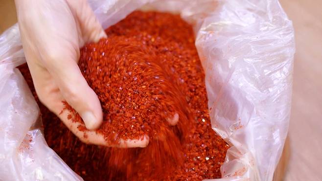 가장 먼저 방금 빻아온 신선한 고춧가루를 준비하세요. 신선한 고춧가루를 잘 보관해야 1년 이상 맛있게 보관할 수 있습니다.