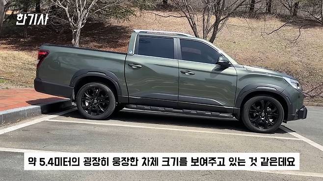 이 차량 승차감에 대해서는 굉장히 마음에 듭니다. 너무 딱딱하지도 않고 물렁하지도 않고 딱 제 취향에 맞다고 생각합니다. 그리고 산에 갈 때도 크게 불편함은 못 느꼈습니다. 근데 이 차량 좀 독특한 점이 서스펜션이 일반 렉스턴 스포츠 칸을 가게 됐을 때는 기본 5링크 서스펜션, 일명 코일 스프링이 적용되고 그리고 파워 리프 서스펜션을 추가하게 됐을 때는 일명 판 스프링이 적용이 돼요. 그리고 다이나믹 패키지가 적용이 됐을 때 다이나믹 서스펜션이 적용이 되어 있는 점, 3가지 서스펜션을 선택할 수 있는 도 좀 독특한 점인 것 같아요.