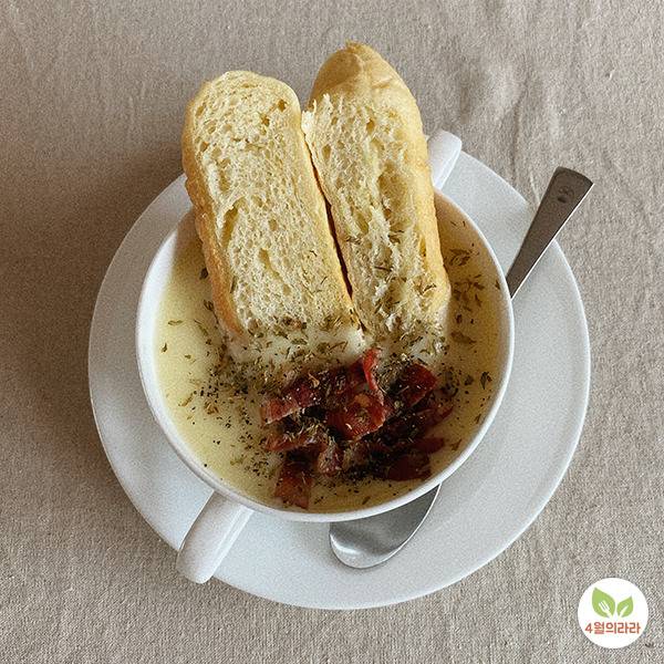 마지막으로 빵과 베이컨칩 넣고, 파슬리와 후추를 갈아 넣어주면 맛있는 감자수프가 완성됩니다. 감자수프 만드는 법 그리 어렵지 않으시죠. 메인 재료인 감자가 맛있을 때 만들면 훨씬 감자의 풍미를 느낄 수 있어 좋습니다. 아직 아침저녁은 싸늘해서 따뜻하게 감자수프 한 끼 챙기기 좋으니 기회 되면 만들어 보세요.