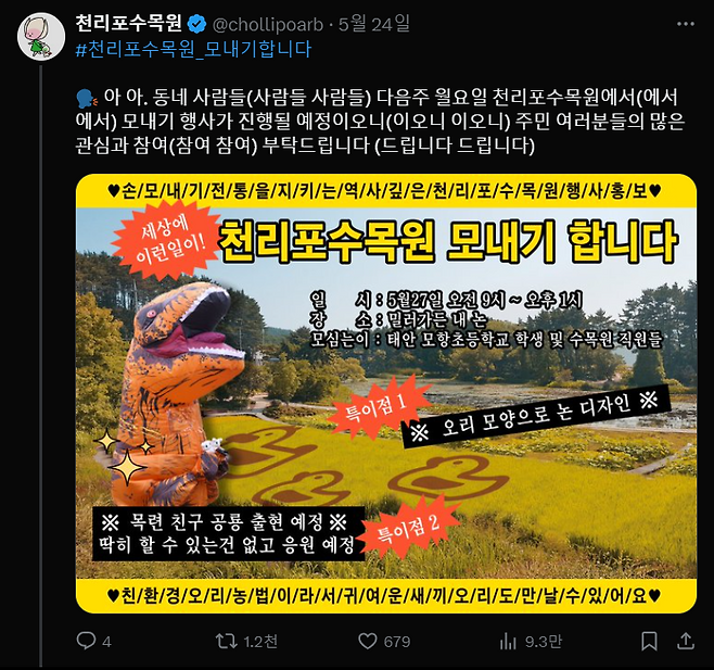 공룡 탈 이벤트를 기획하며 X에서 화제가 되었는데!