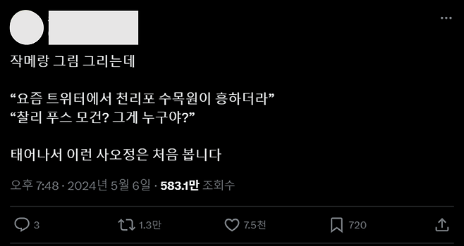 사오정 썰이 X에서 1.3만 회 공유, 580만 회 조회를 기록했고,