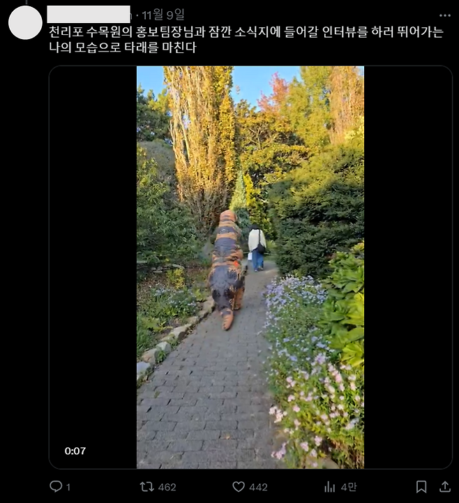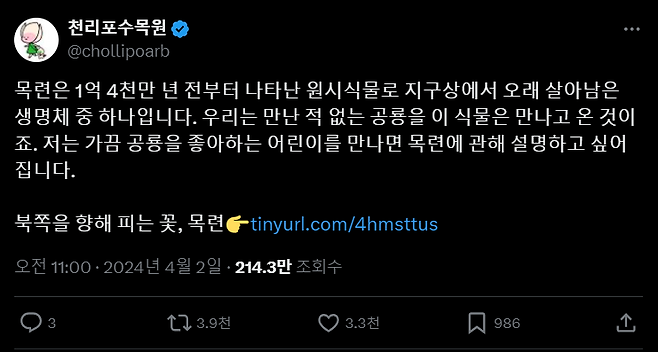 천리포 수목원이 해당 글에 바로 반응해 주면서