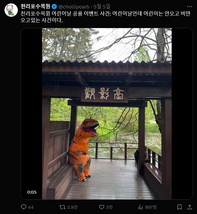 와중에 썰 주인공 분은 또 공룡 탈을 쓰고