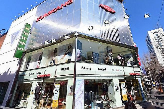 현재 이 건물의 기준시가는 약 1억 1,500만 원 수준으로 확인됐다. 부동산 업계에서는 “해당 매물은 400억~500억 원을 호가할 것”이라는 평가를 내놓았다. 이 건물에는 금강제화의 계열사인 프리스비가 입점해 있다. 프리스비는 애플 공식 리셀러다. 현재 프리스비를 운영하는 갈라인터내셔널의 최대 주주는 지분 50%를 보유한 김성환 회장의 아들 김정훈 부사장이다.