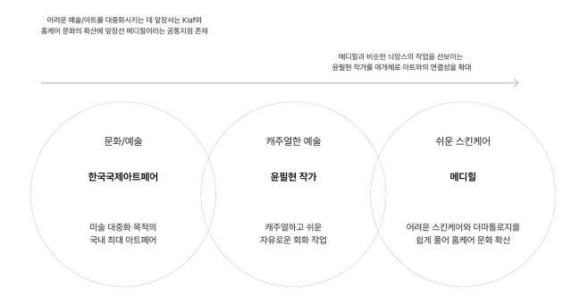 물론 이번 팝업스토어가 메디힐의 핵심 고객과 만날 최적의 장소는 아니었을 겁니다. 메디힐의 타깃 고객 페르소나와 아트페어 관람객의 페르소나는 분명 차이가 있거든요. 하지만 브랜드 캠페인 성격의 행사라면 이야기는 달라집니다. 국내에서 아트페어 행사는, 트렌드를 주도하는 얼리어답터들이 모이는 대표적인 장소입니다. 따라서 이들에게 새로운 메디힐을 노출했을 때, 기대할 수 있는 바이럴 효과는 당연히 커질 수밖에 없습니다.